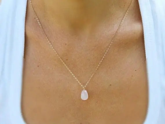 Rose Quartz Heart Charm Necklace ilaments Jewelry