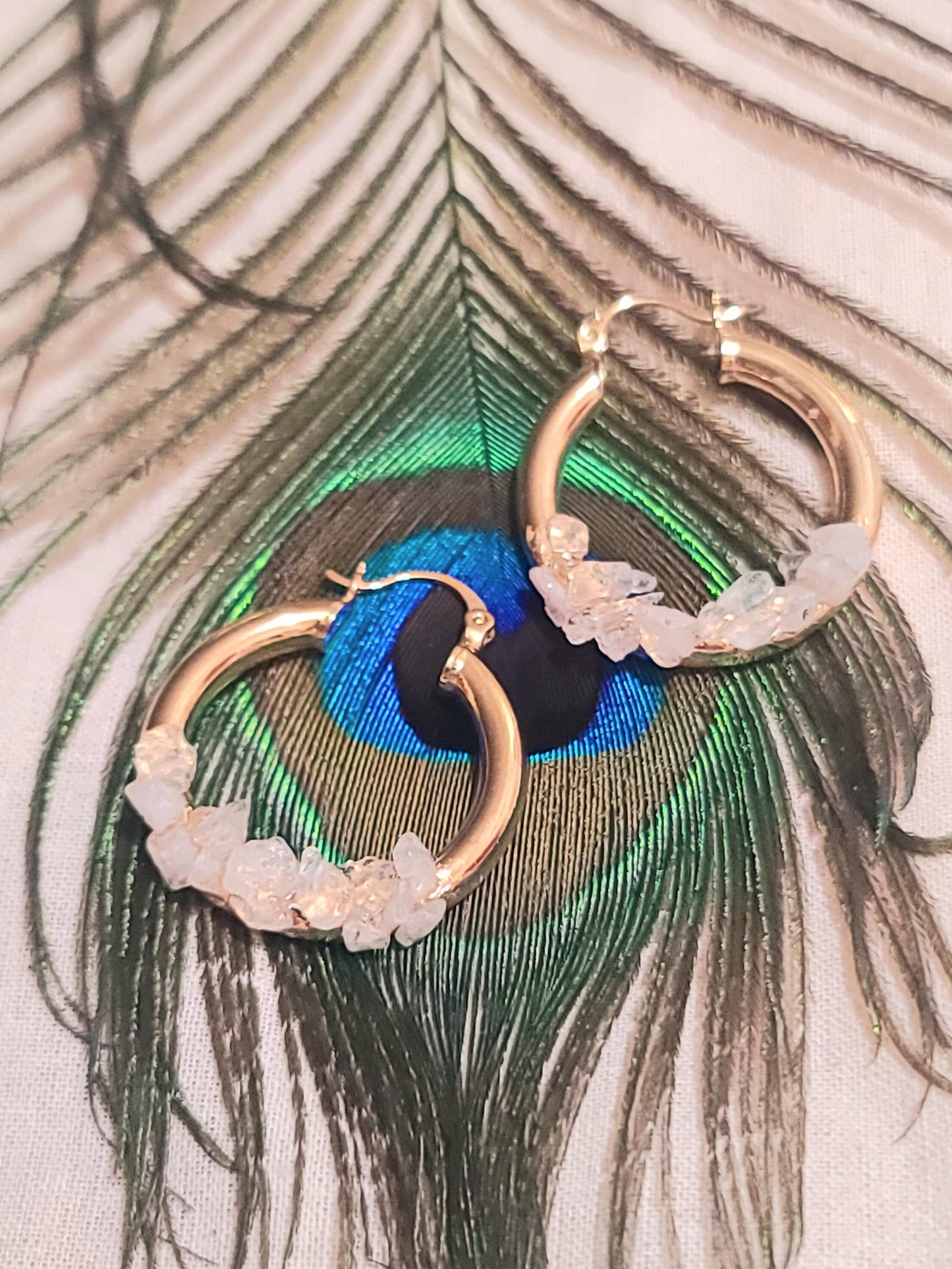 Our New Favorite Moonstone Huggie Hoop Earrings will have you looking fly, energies balanced & stress free!