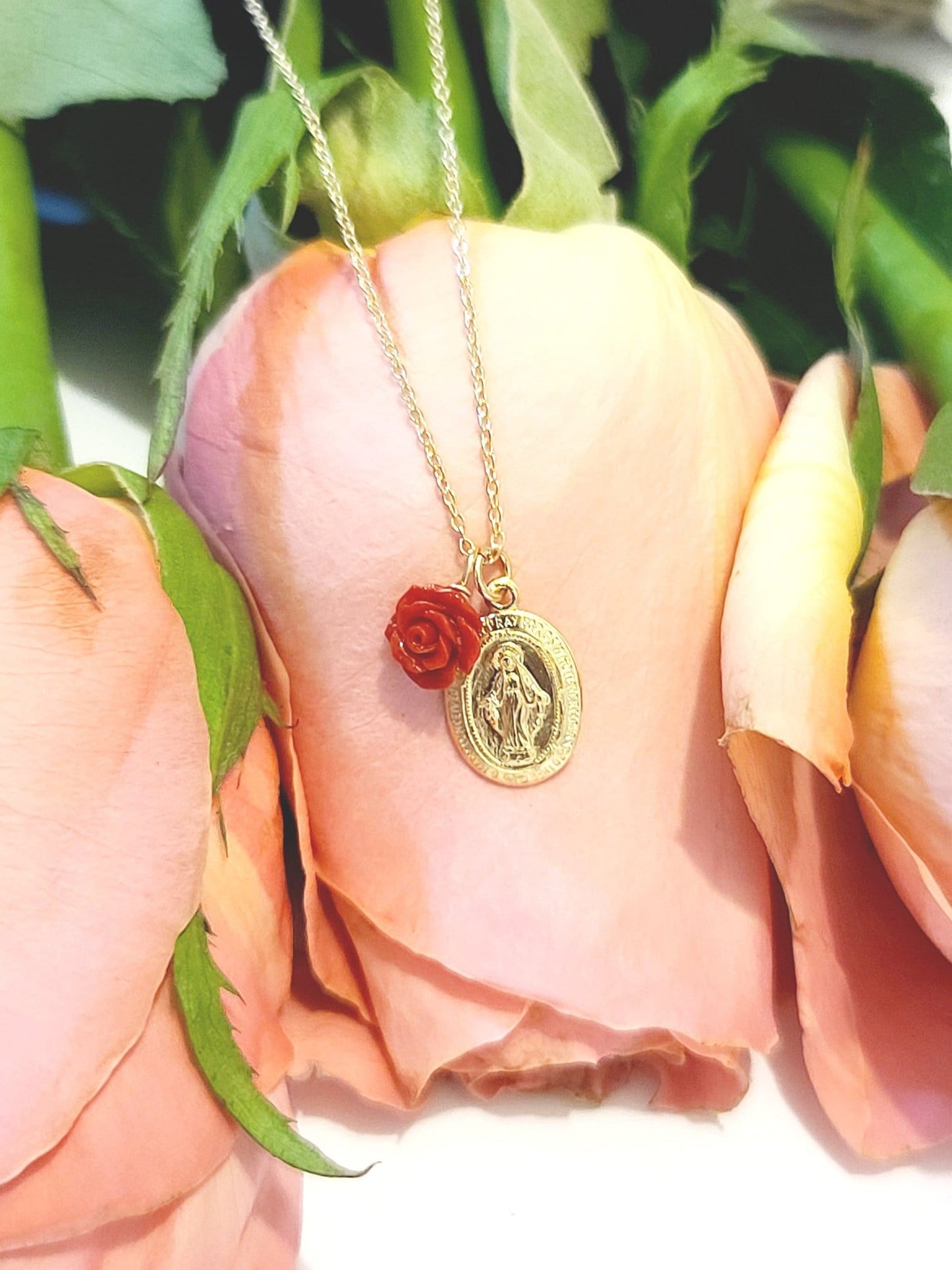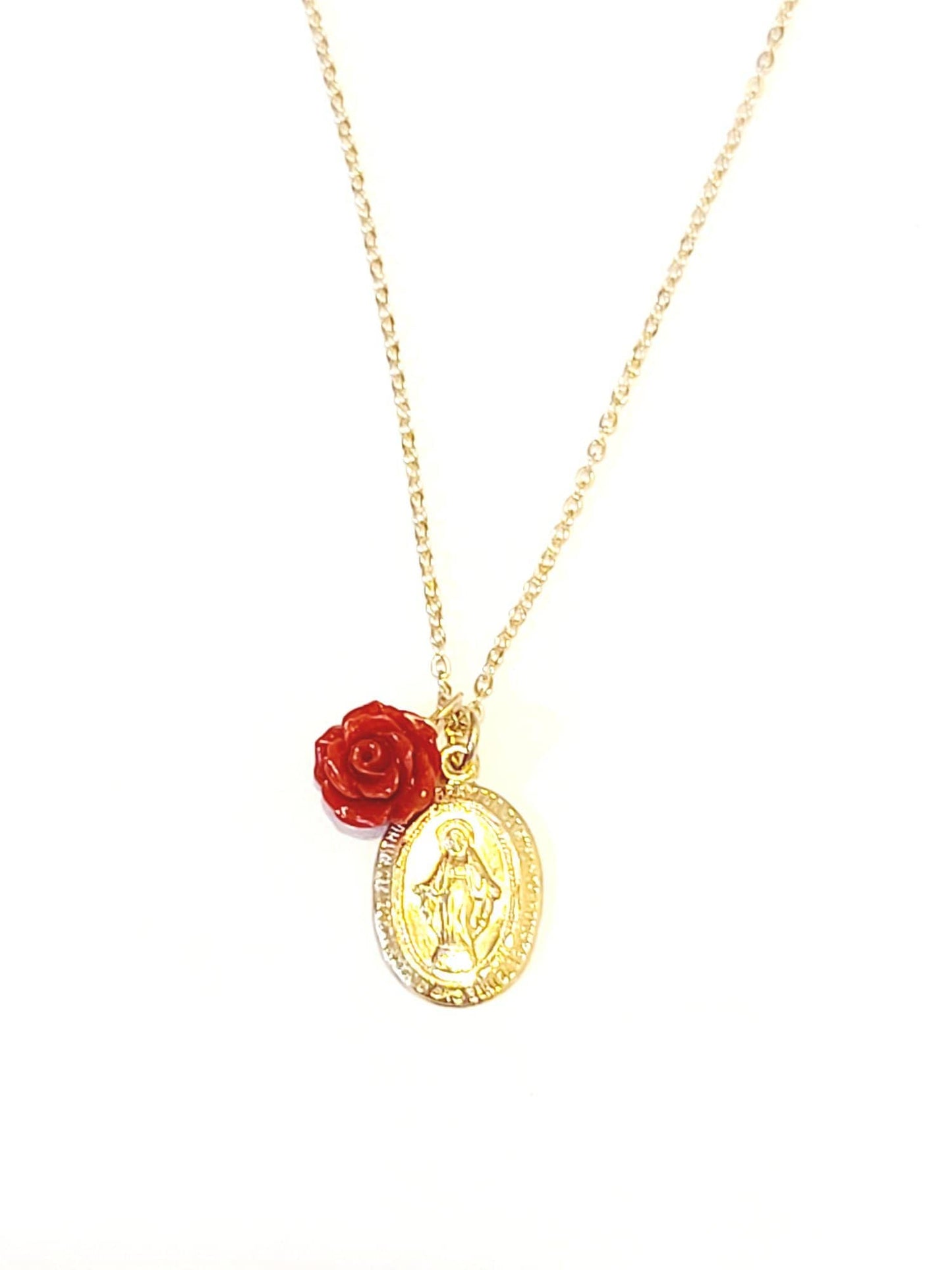 Looking for the perfect Virgen Charm Necklace? Well look no further! Avail in 14kt Gold fill or Sterling Silver.