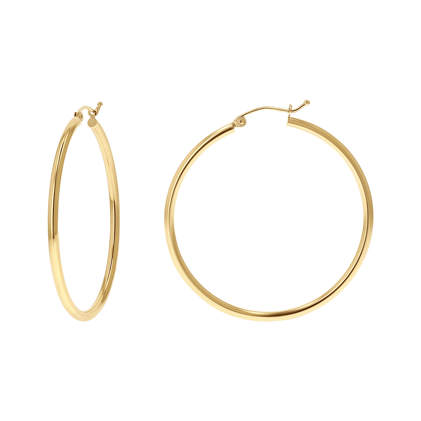Beautifully crafted 14kt Gold Hoop Earrings measure 2" with a firm Latch closure!