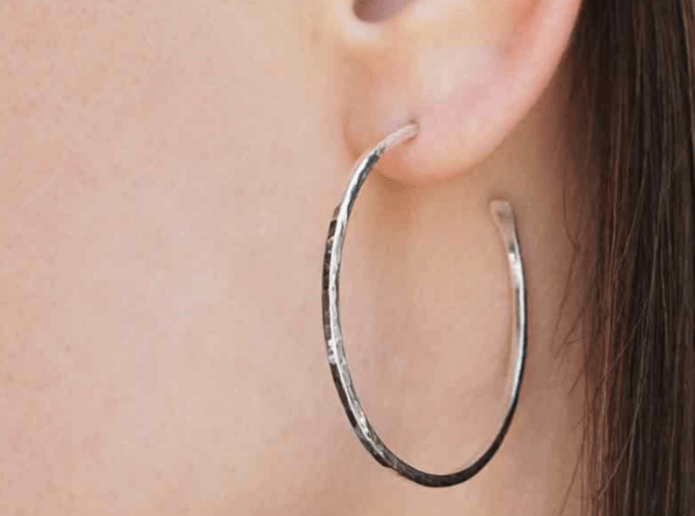 Handcrafted Hammered Sterling Silver Hoop Earrings.