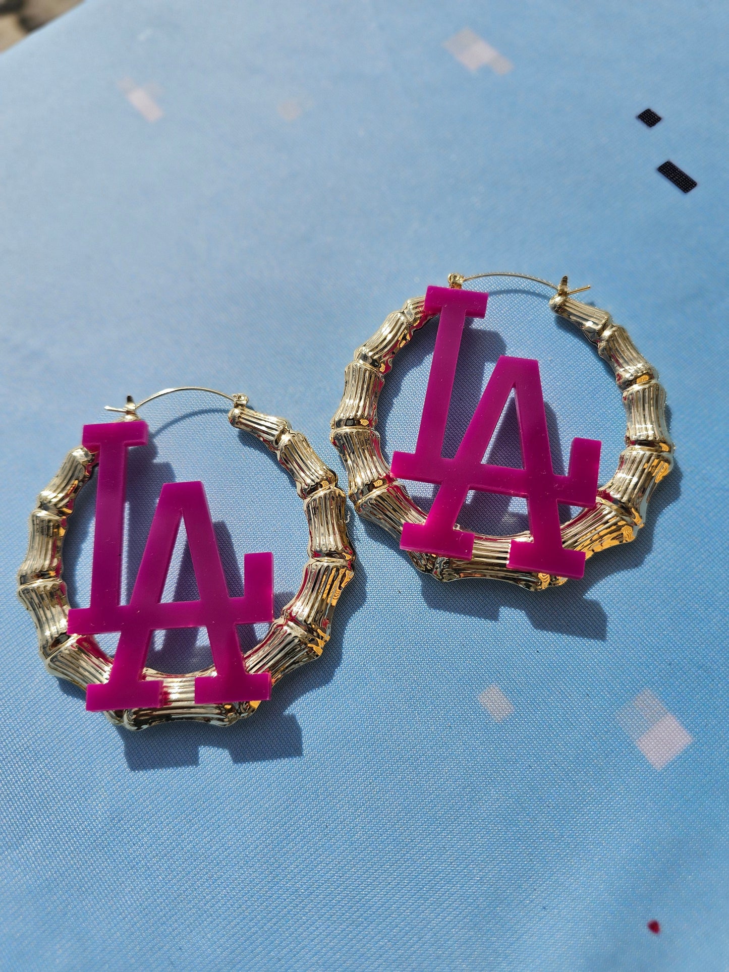 LA Fuschia Bamboo Hoops ilaments Jewelry