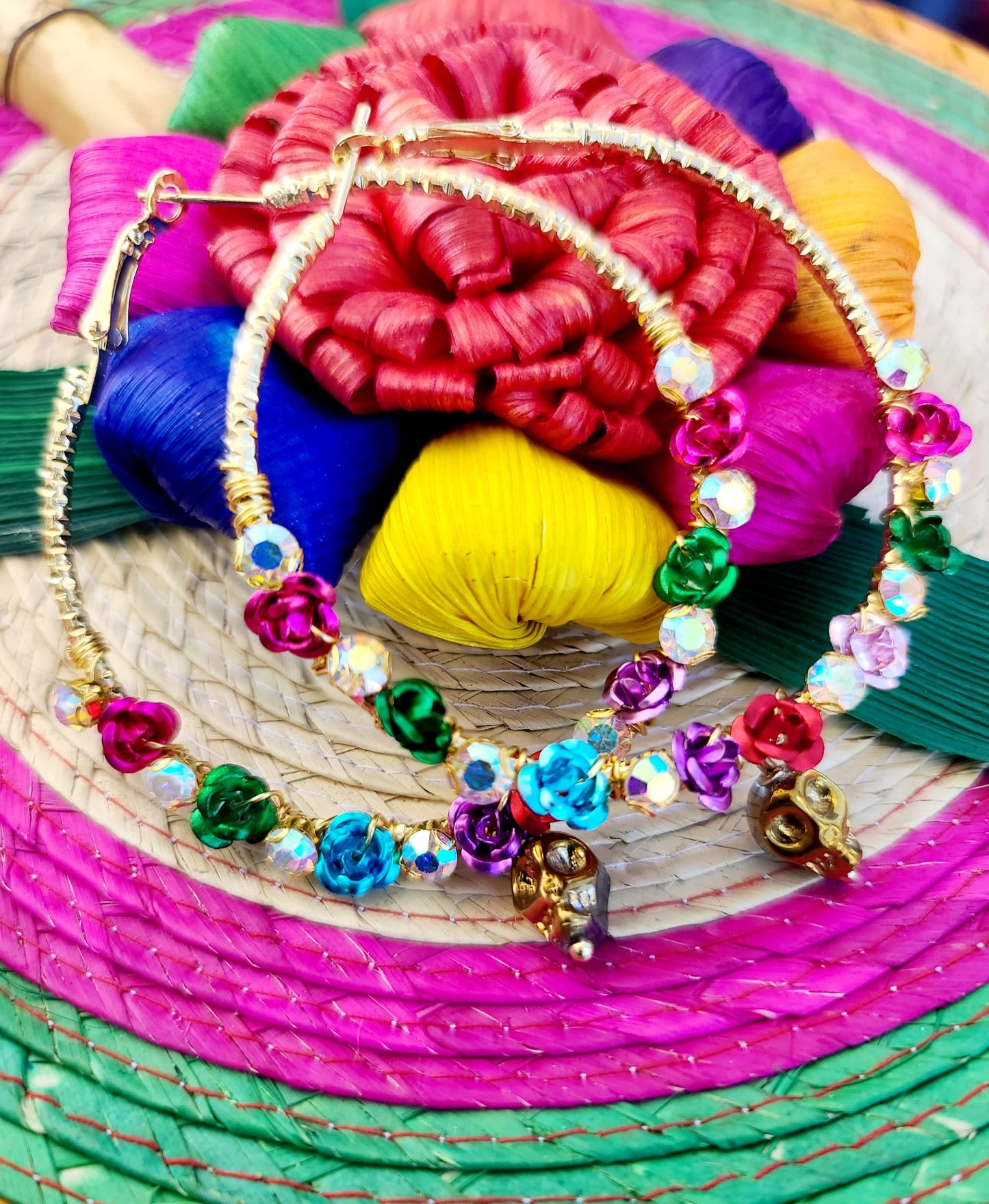 Papel Picado Gold Floral Hoop Earrings ilaments Jewelry