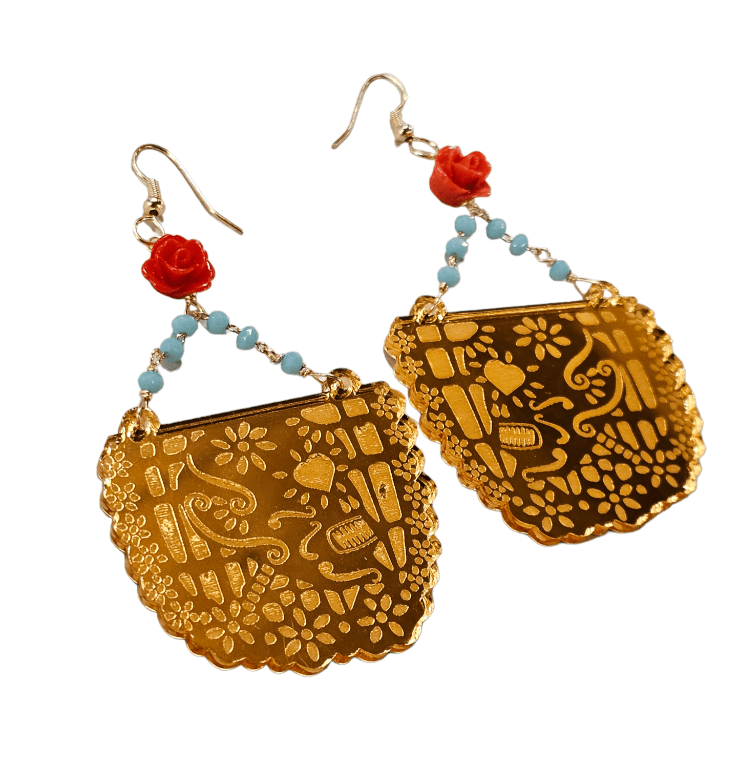 Papel Picado Gold Floral Hoop Earrings ilaments Jewelry