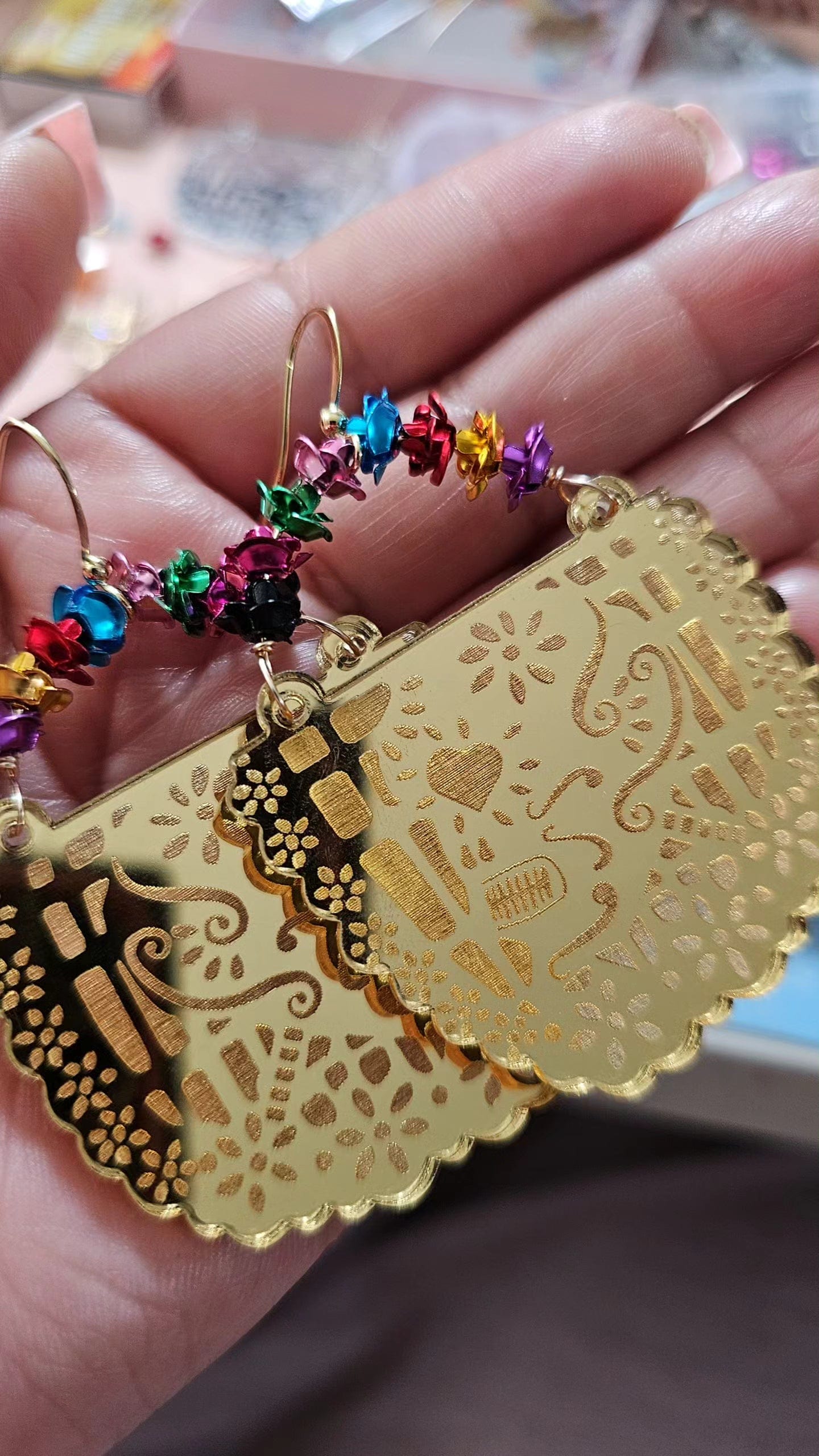 Papel Picado Gold Floral Hoop Earrings ilaments Jewelry