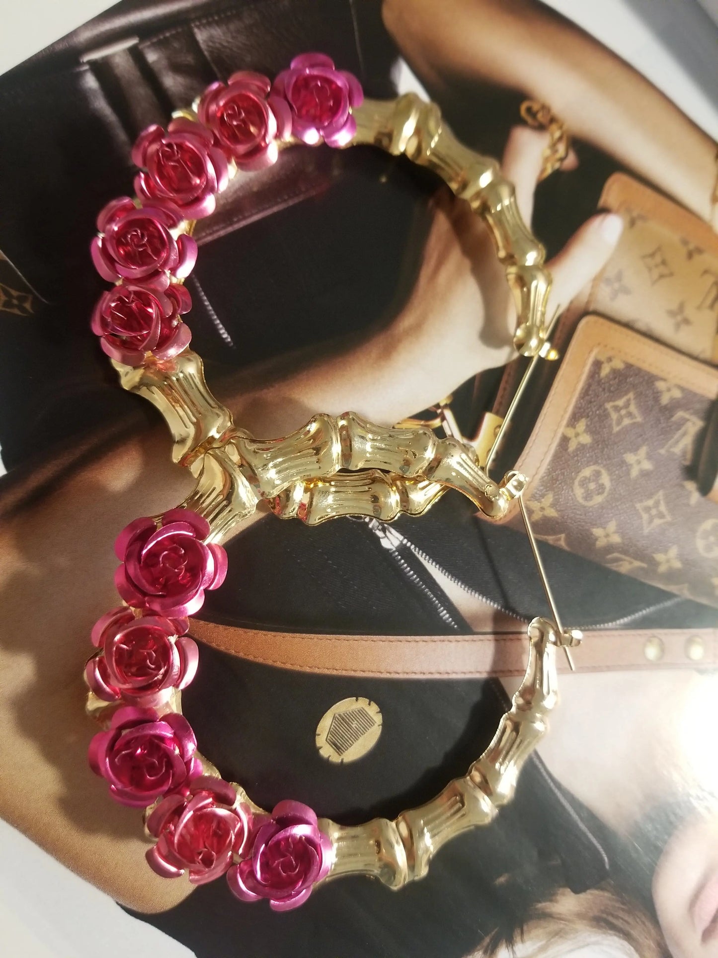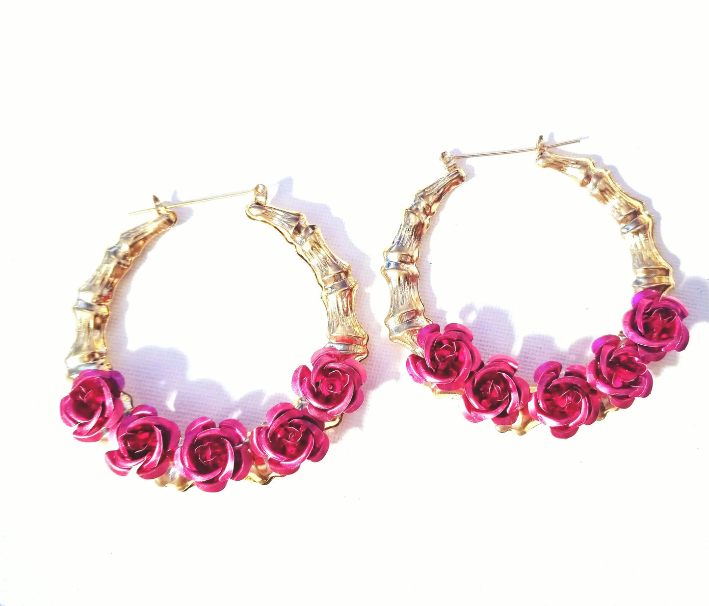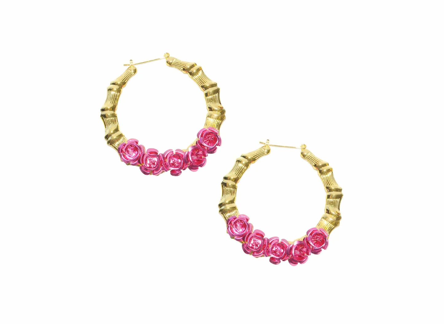 Rosas Y Que Bamboo Hoops are handmade with Fuschia Pink Aluminum Roses!