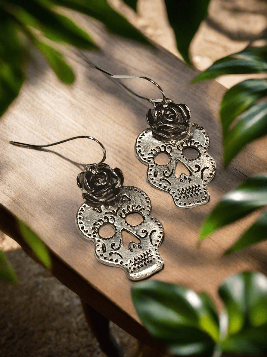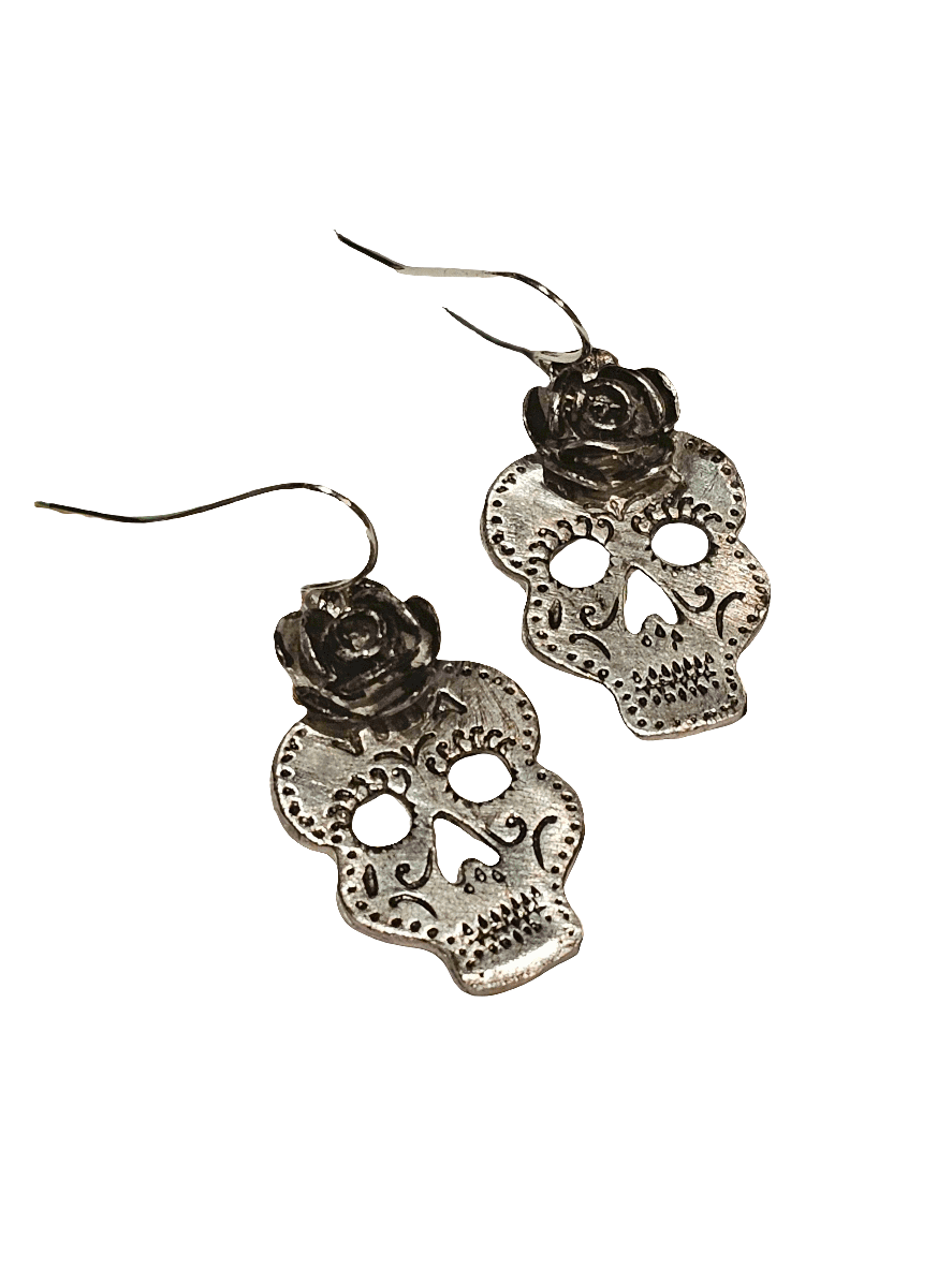 Rose Sugar Skull Sterling Silver Earrings
