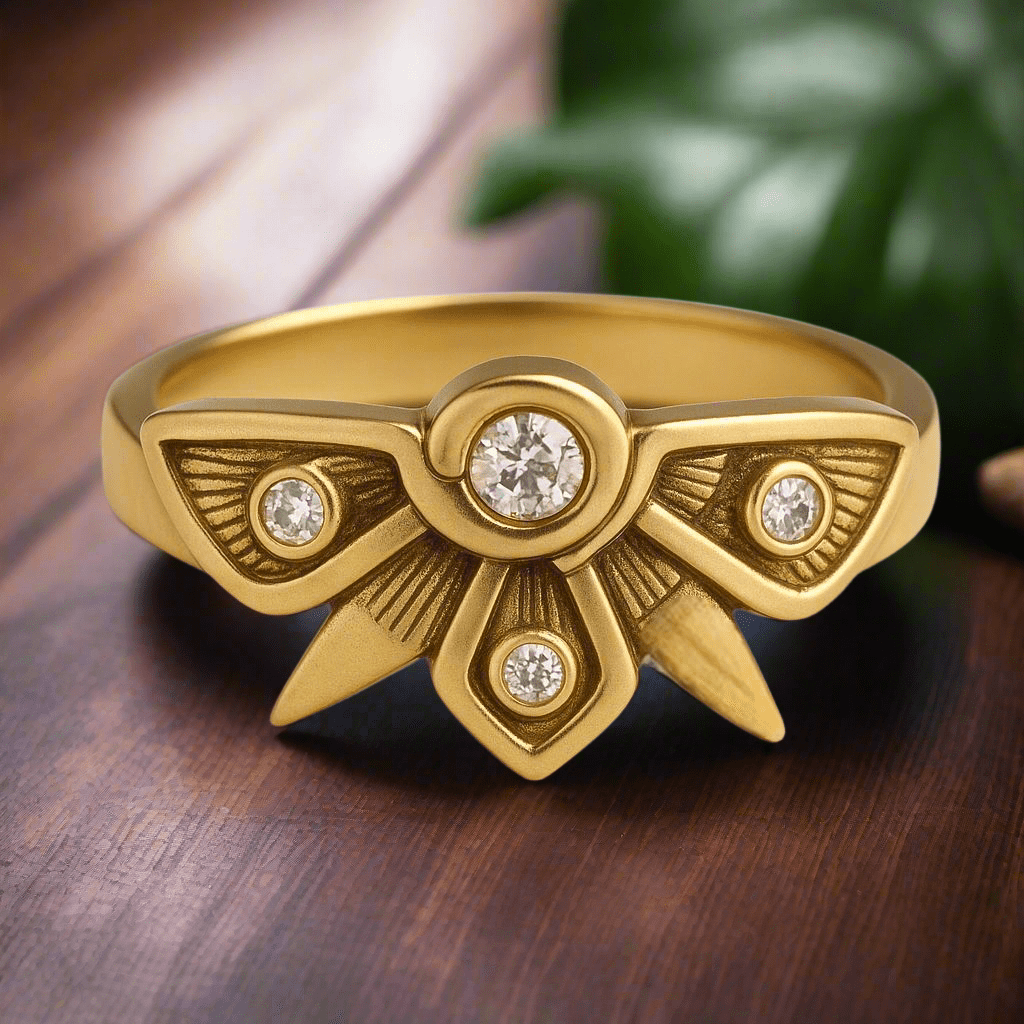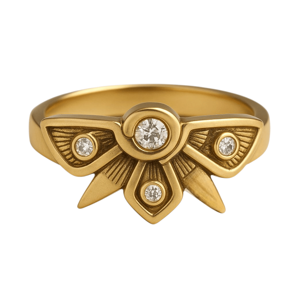 Each outer wing will have a pavĆ©-set diamond at its tip or āeyeā point, reflecting the sacred geometry.