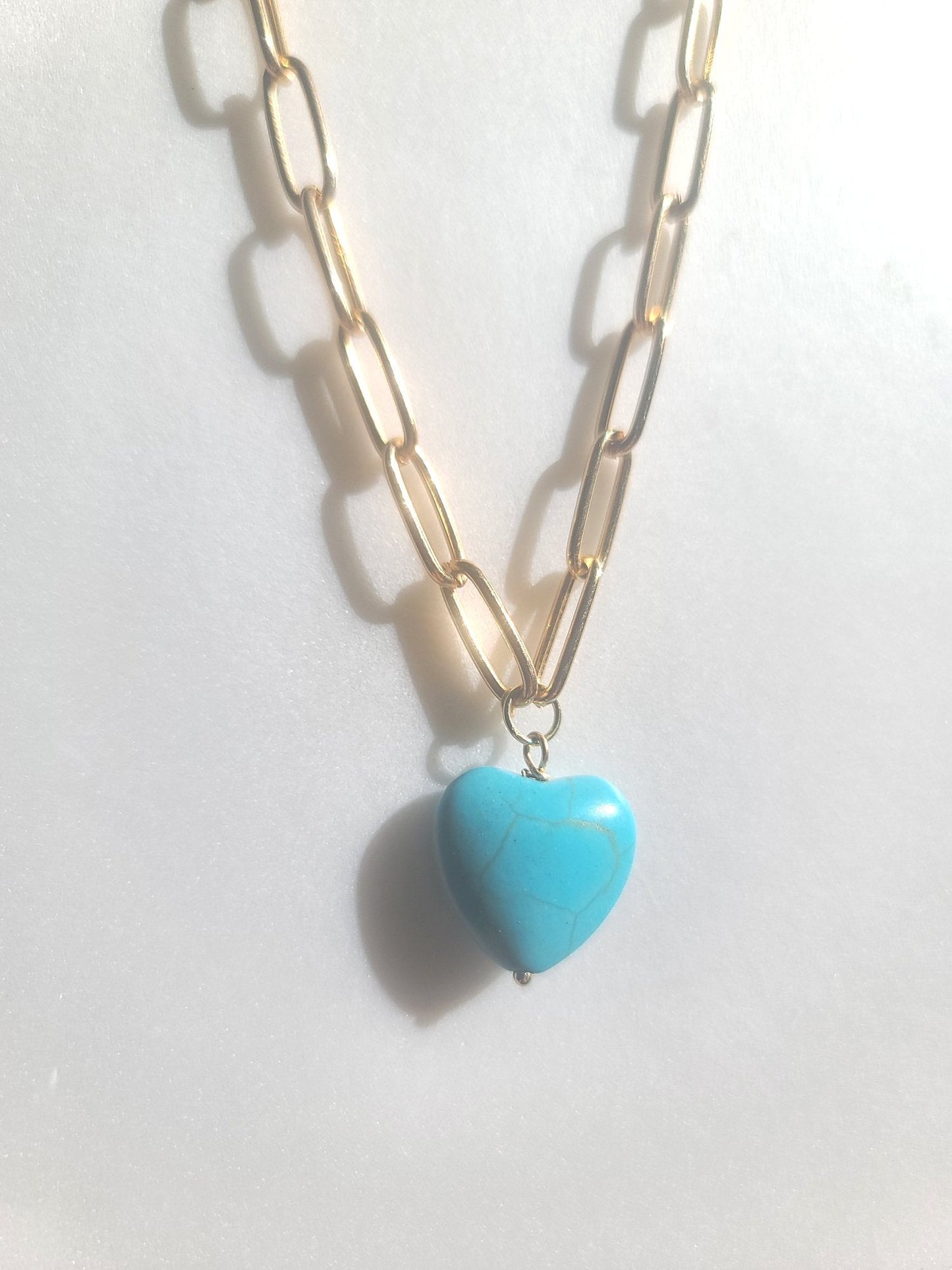 You will Break Hearts in our Turquoise Howlite Heart Necklace.